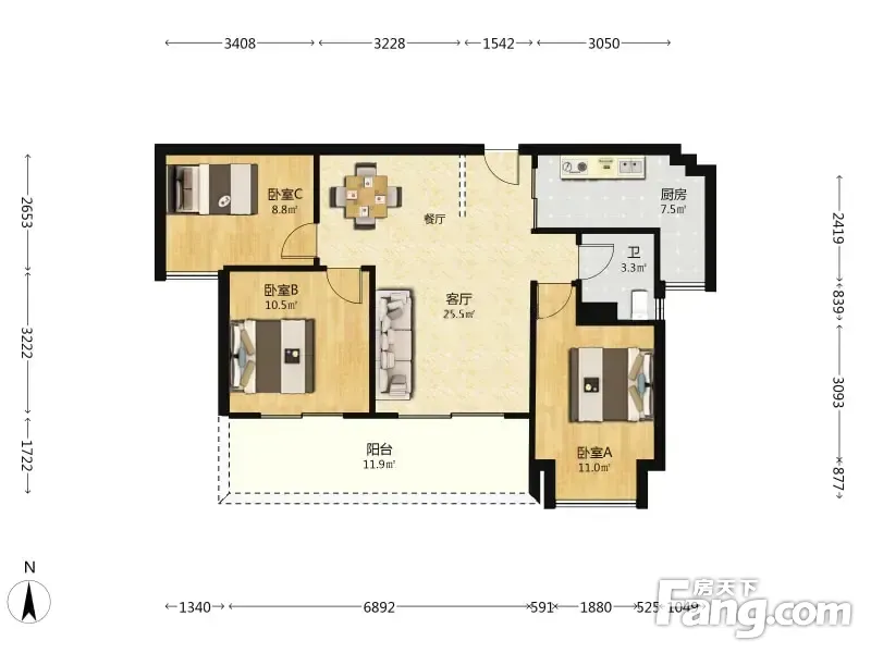 3室1厅2卫