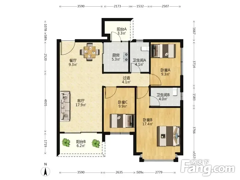 3室2厅1卫