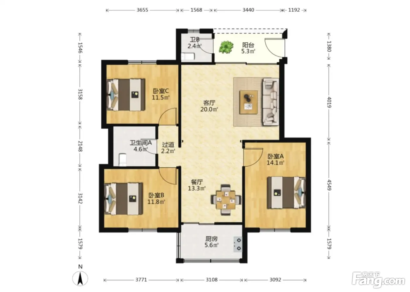 3室2厅1卫