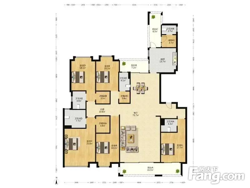 房屋拥有相对宽松的尺寸,布局通透,动静分离,设计豪华