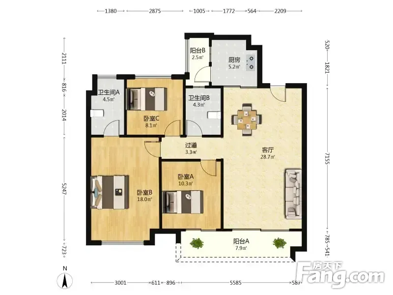 欢乐海岸天鹅堡 3室2厅 119.56平