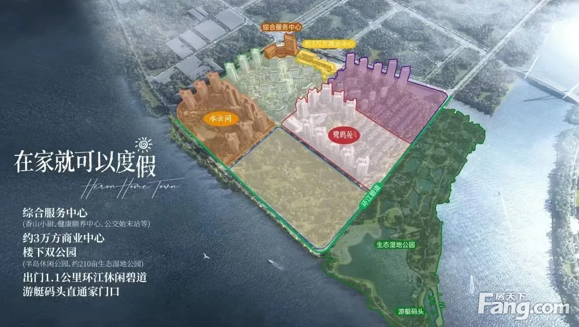 项目总占地面积:约 40 万㎡丨项目总建筑面积:约 80.4 万㎡ 绿化率:42.86%丨容积率:约 1.5 总户数:5145 户丨停车位:5864 鹭鸣苑组团楼层:20-21 层 鹭鸣苑组团产品:75-119㎡二至四房墅质洋房,180-412㎡中式别墅