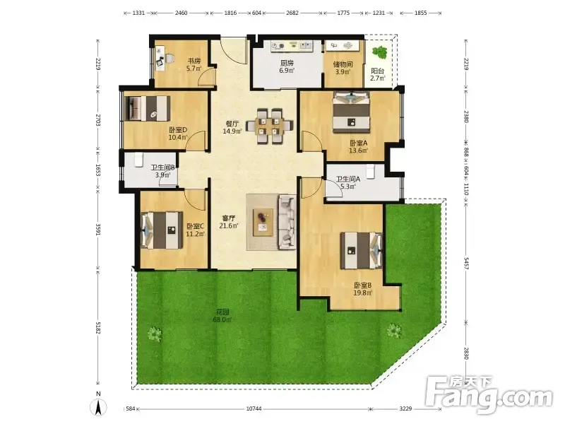 华鸿珑悦轩精装 5室2厅 151.36平带花园