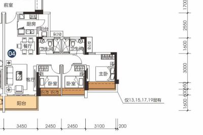 户型齐全,主打户型方正,动静分离,采光充足,主卧带卫,双阳台三居