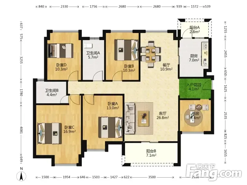 房屋拥有相对宽松的尺寸,布局通透,动静分离,设计豪华