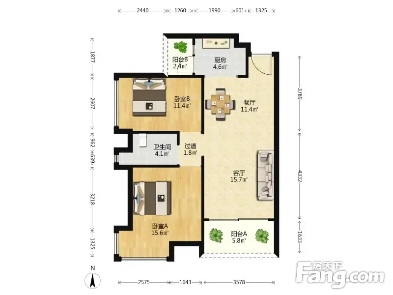 2室1厅2卫