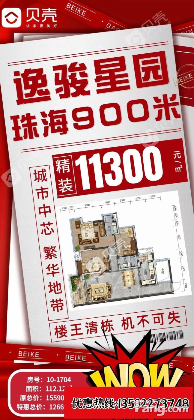 【逸骏星园】低首付现楼即买即住即 900米珠海/6年醇熟住区 南向大度/园景 10栋112-122㎡王炸户型驾临