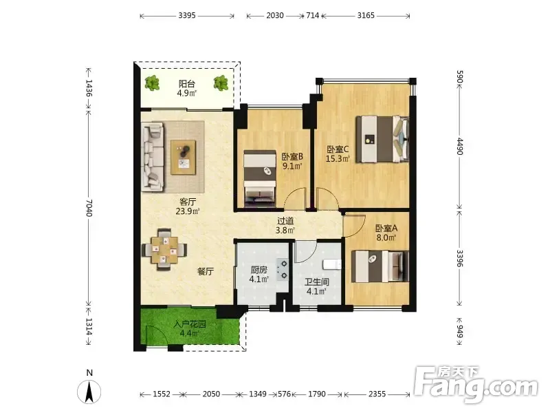 户型齐全,主打户型方正,采光充足三居