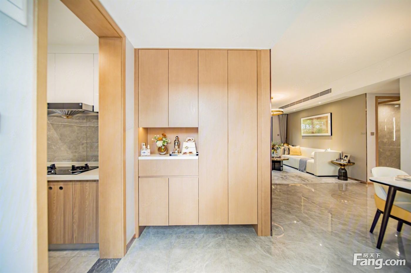 中山宝龙城户型主要有89平-157平的全明格局,采光充足,主卧套间,U型厨房的三居 。