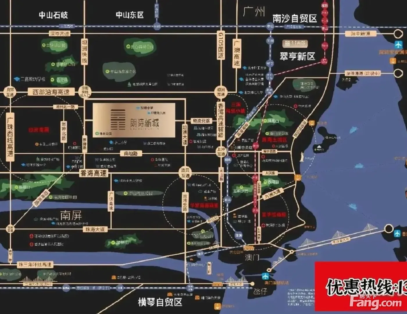 1、地处粤港澳大湾区几何中心,珠海、广州、深圳、香港、澳门环绕。 2、10分鐘到珠海主城中心,周边3-5万+/㎡,房价差1/4。 3、20分鐘直通中山主城区,10分鐘接驳珠海主城区,25分鐘通澳门 4、快40分鐘香港,三高速二快线环绕,畅达湾区各市。小区自带社区巴士 5、轻松通达珠海明珠站、拱北站等重要站点,便利程度无可匹敌。