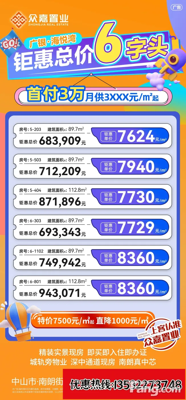 首付3万,月供3×××元买中山核心地段,捡漏 廣銀海悅灣特价7500.直降1000元/㎡ 总价6字头,在售89-112平户型 68万买3房,首期3万,月供3千来块, 精裝現房即辦證 城軌旁物业 深中通道现楼,南朗真中心