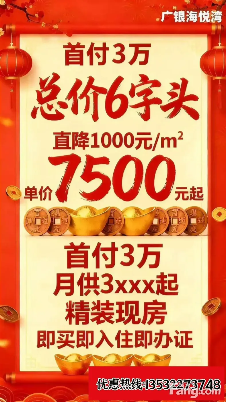 特价7500,直降1000一平方“广银海悦湾”深中通道现房