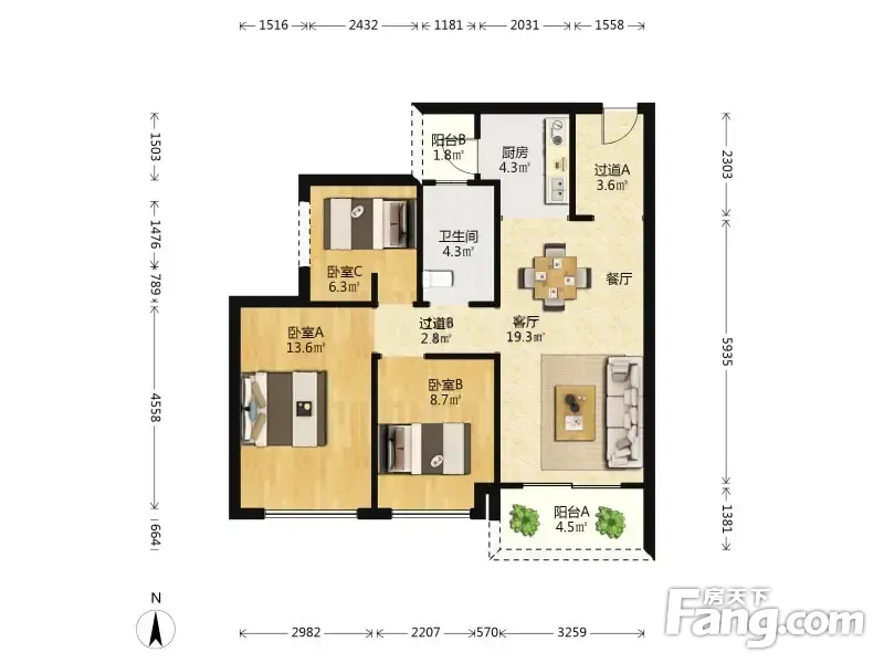 3室2厅1卫