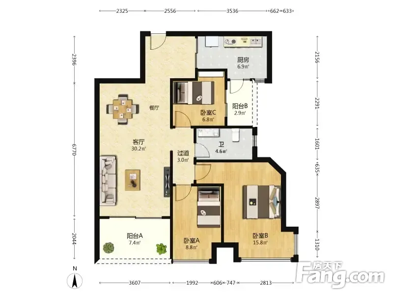 户型齐全,主打户型方正,明卫,双阳台三居