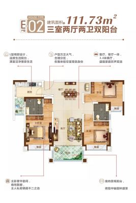 户型齐全,主打户型方正,动静分离,采光充足,大面宽阳台三居