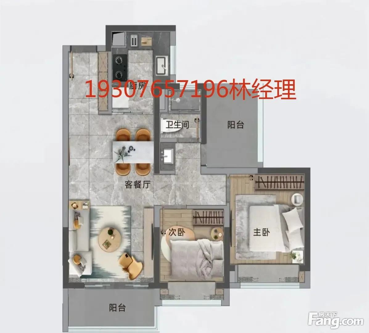 户型齐全,主打户型方正,主卧带卫,干湿分离,大面宽阳台二居