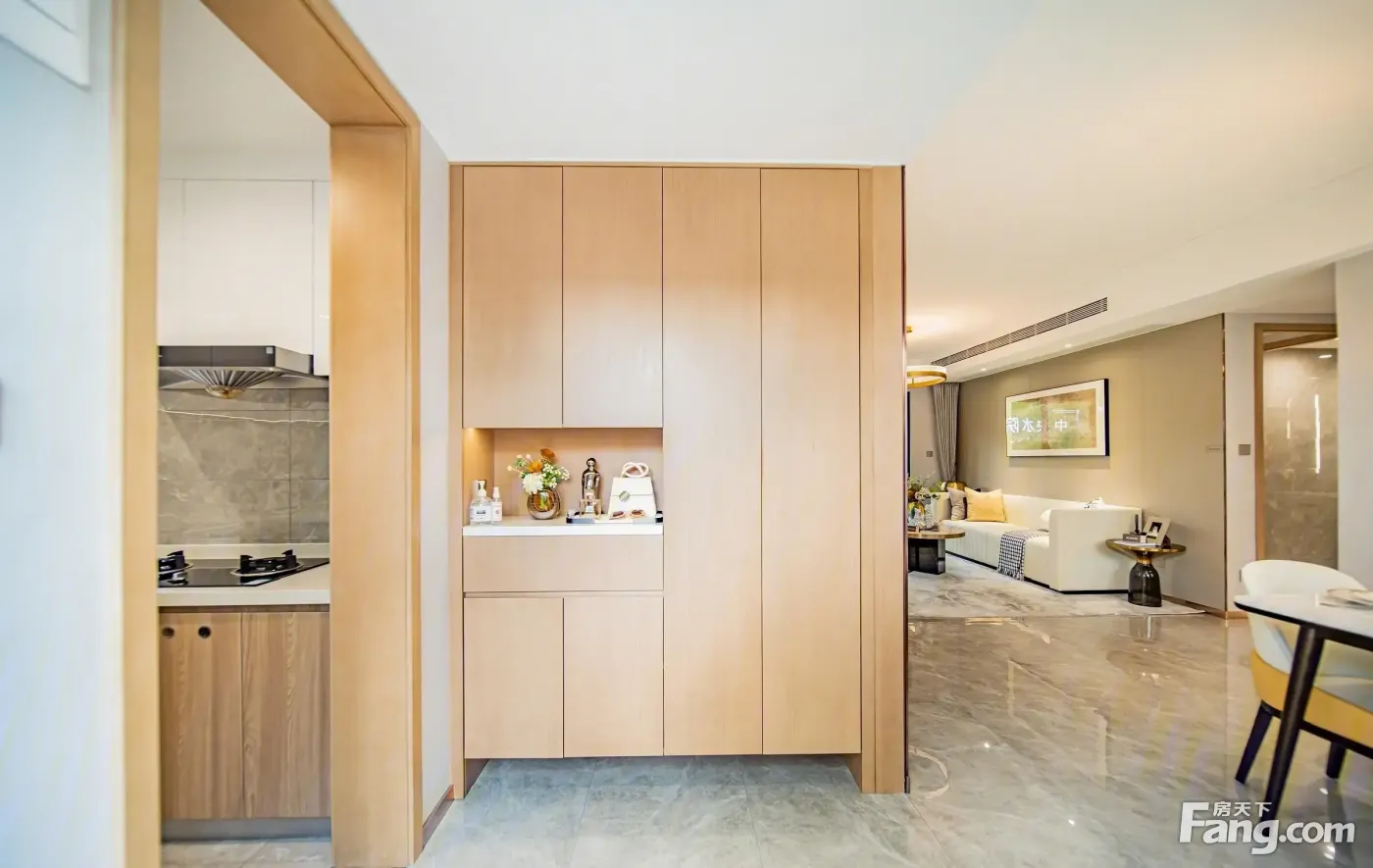 中山宝龙城户型主要有89平-157平的全明格局,采光充足,主卧套间,U型厨房的三居 。