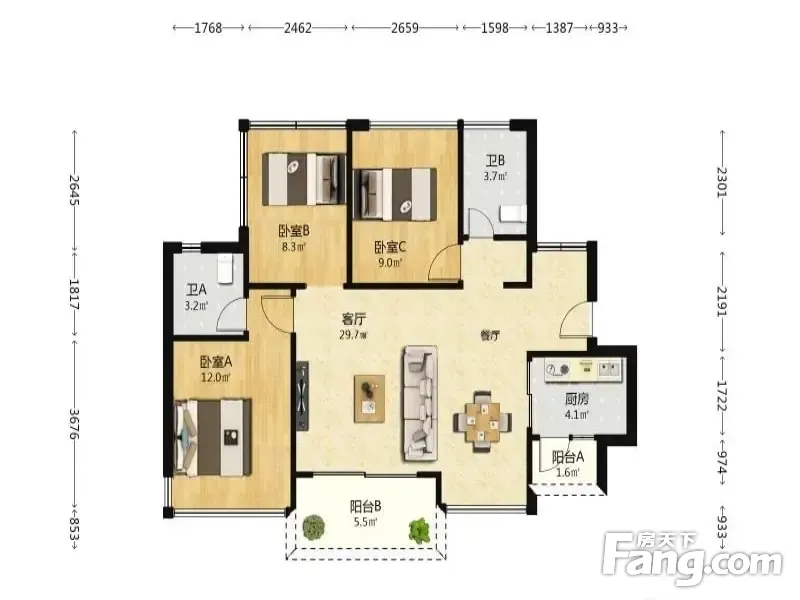 3室1厅2卫