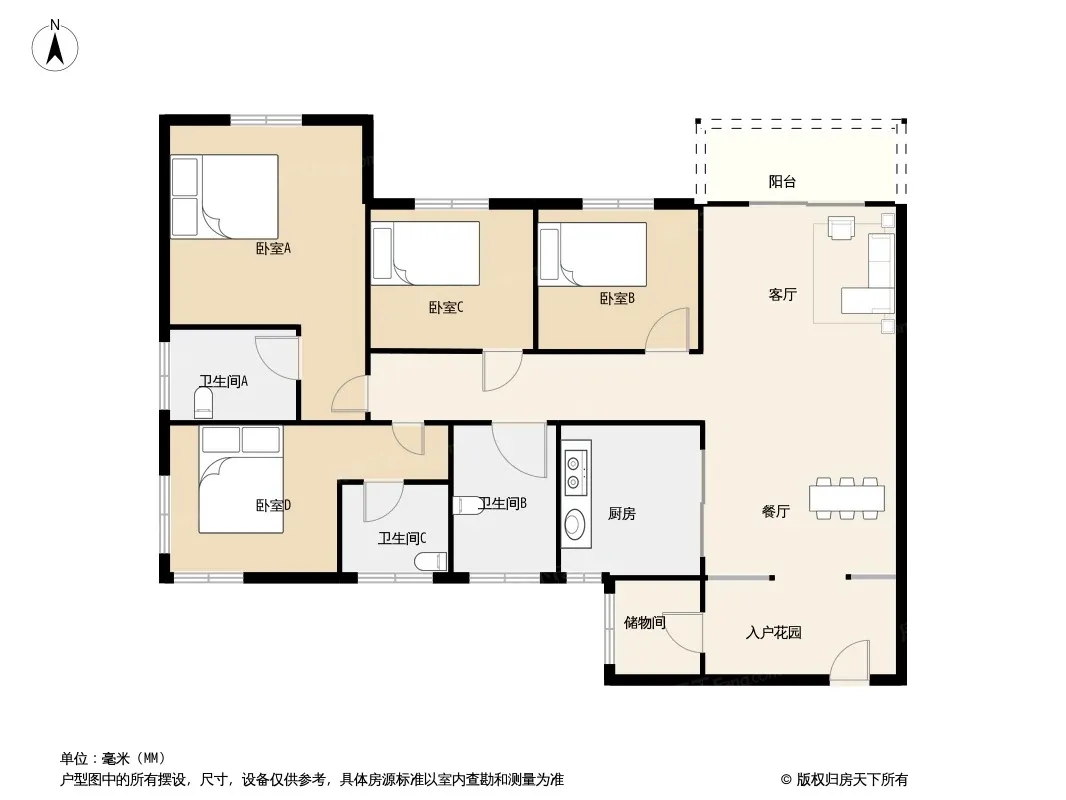 4房2厅3卫,双套间,户型稀缺,置换的好选择,格局方正,采光好,有2个房间朝南,视线无遮挡。