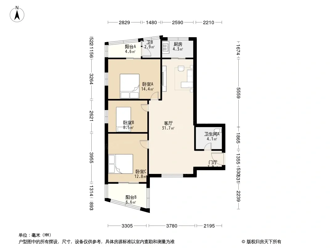 *获取完整户型报告,同时会有免费语音讲解服务