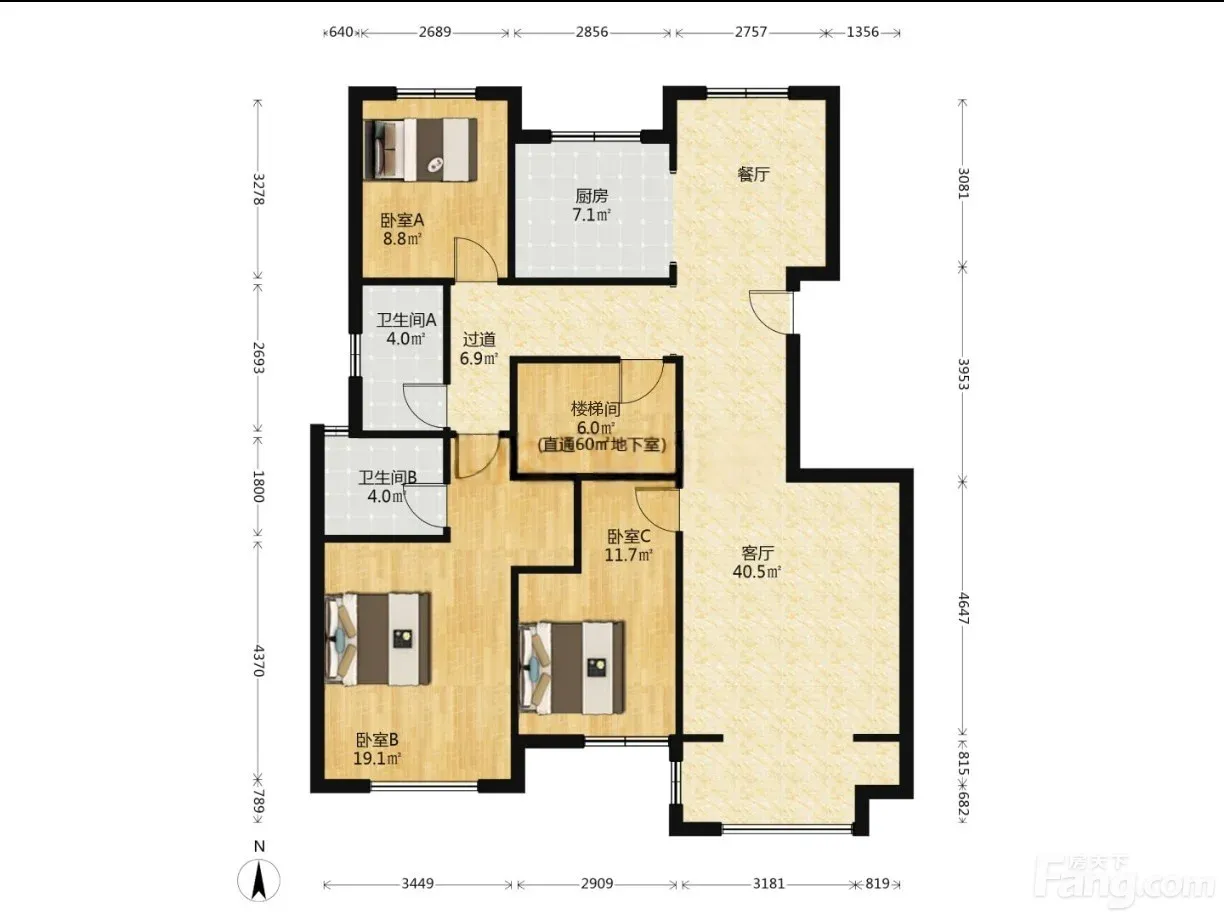 送车位,地下室。南北通透三居室。仅115万