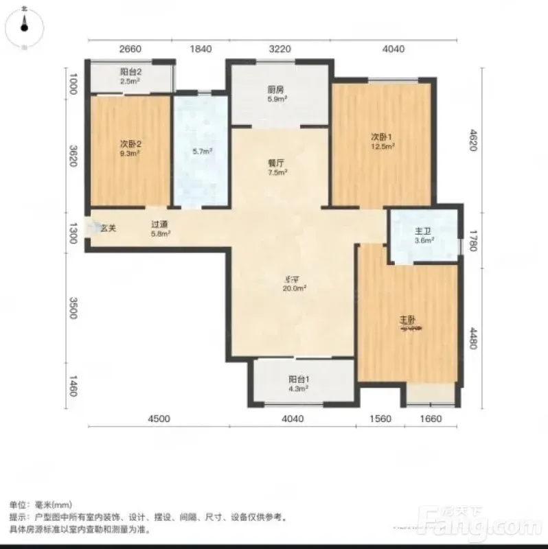 户型齐全,主打南北通透,全明格局,客厅朝南三居
