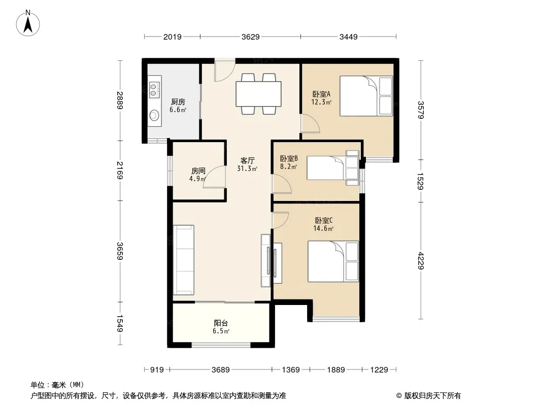 户型齐全,主打客厅朝南,主卧朝南,观景飘窗三居