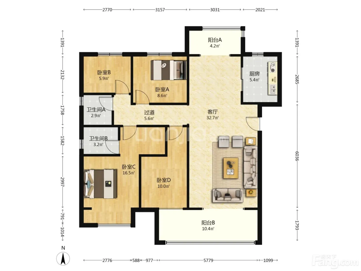 3室2厅1卫