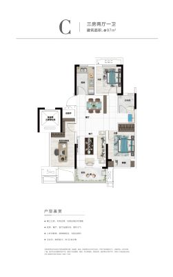 户型齐全,主打南北通透,全明格局,户型方正三居