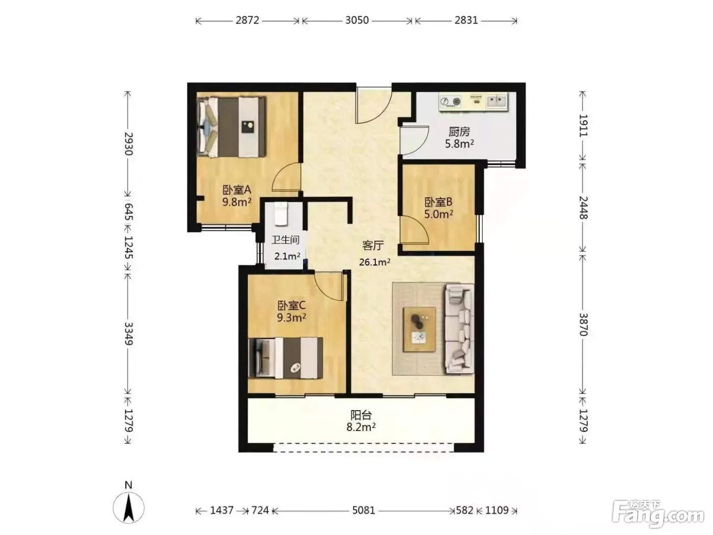3室2厅1卫
