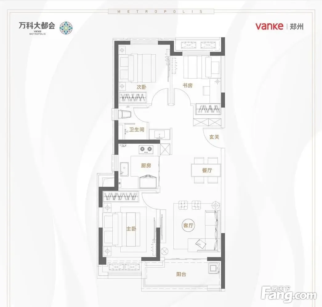 万科大都会·都会天际户型主要有89平-118平的全明格局,户型方正,动静分离,采光充足的三居 、75平-80平的南北通透,全明格局的二居 。