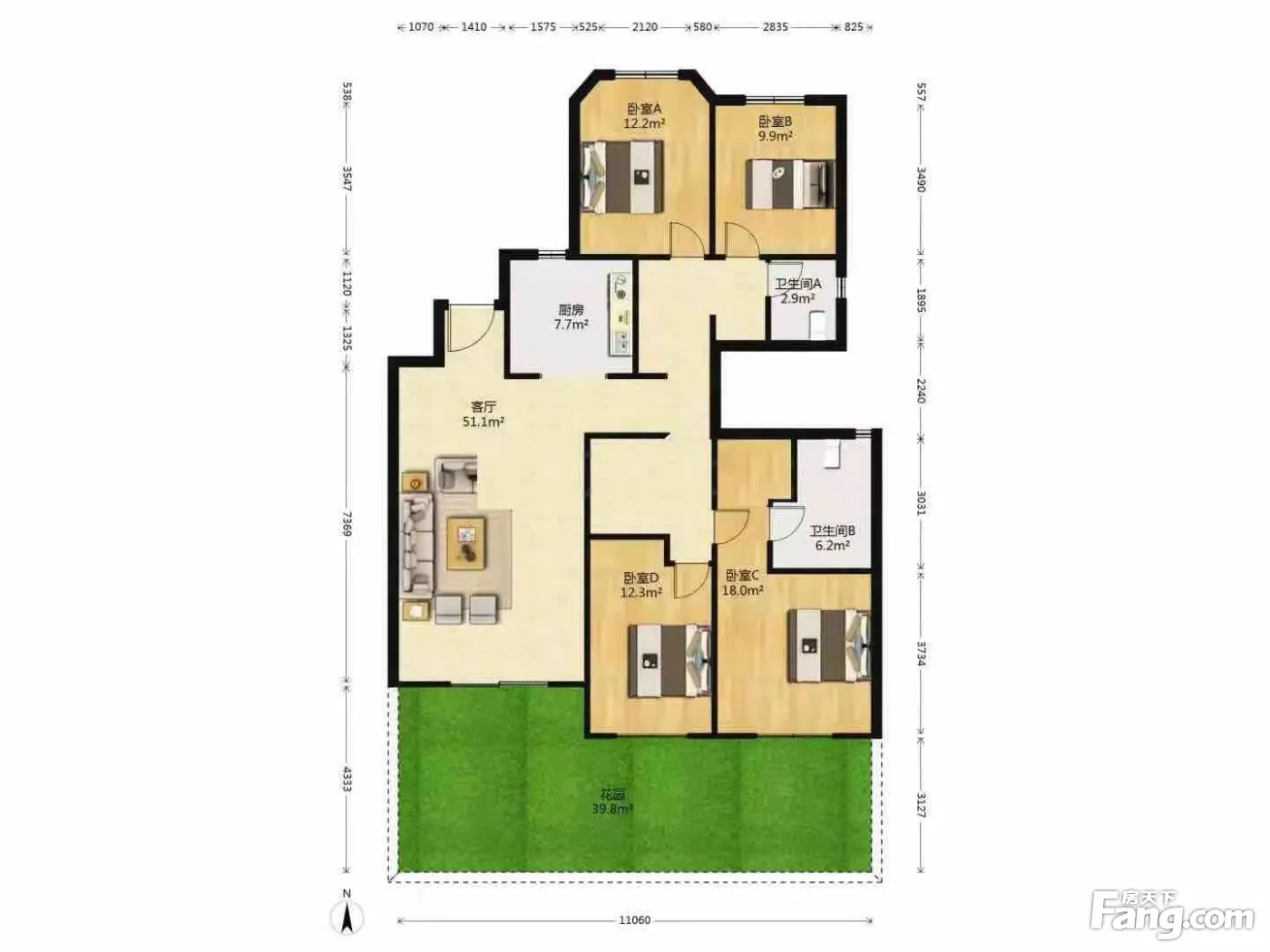 北港稀缺四房,一楼带院,146㎡118万送地下室