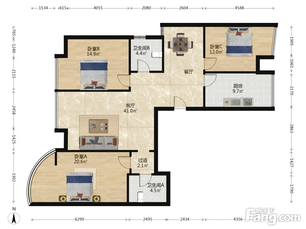 户型齐全,主打明卫,双阳台三居
