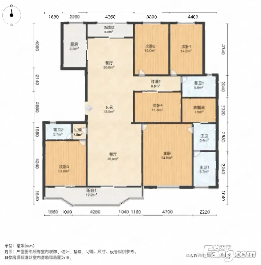 户型齐全,主打明卫,明厨,独立衣帽间,客厅朝南,双阳台四居