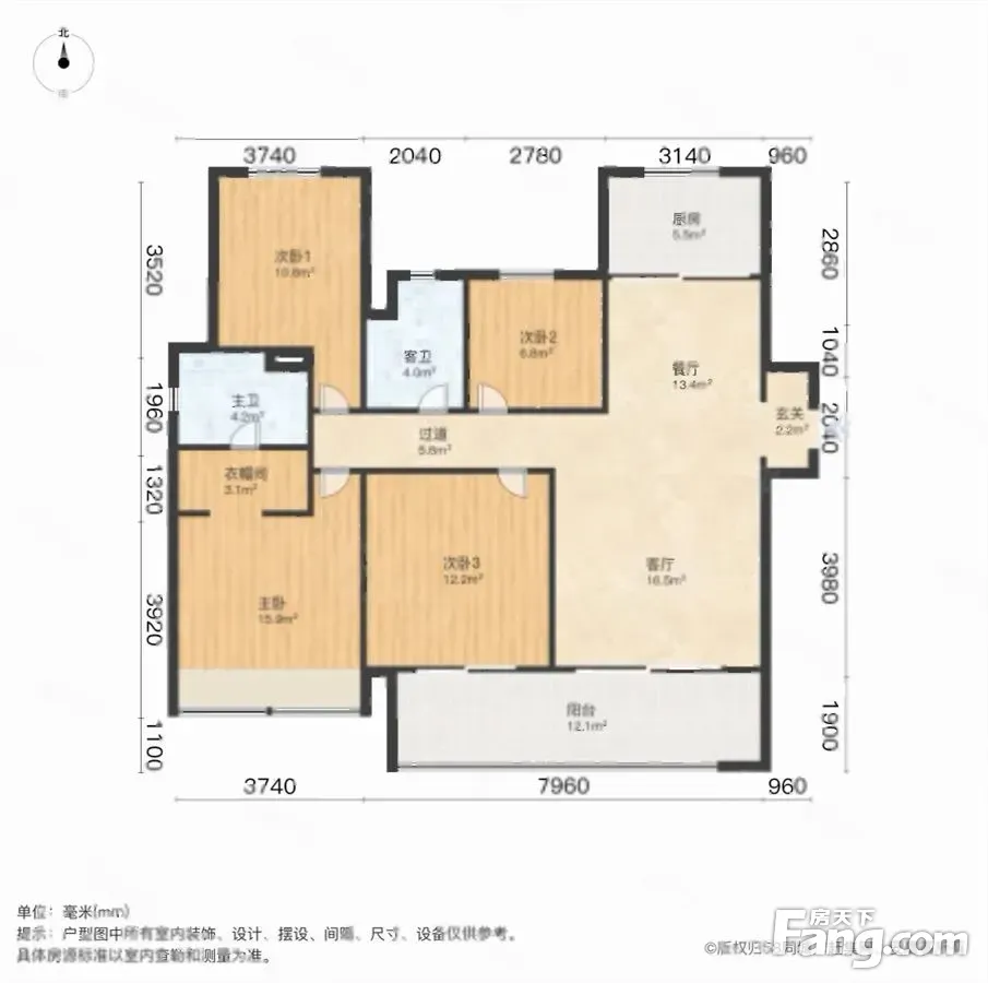 户型齐全,主打全明格局,采光充足三居