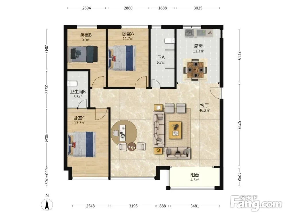 3室2厅1卫