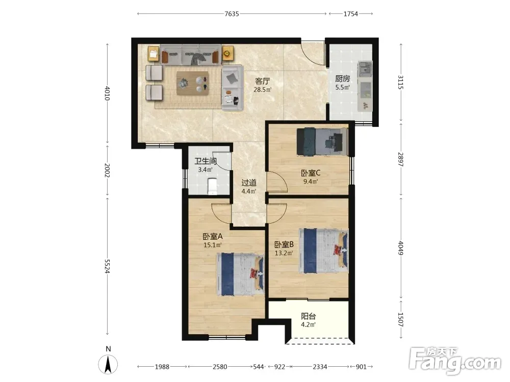 户型齐全,主打南北通透,全明格局,户型方正三居