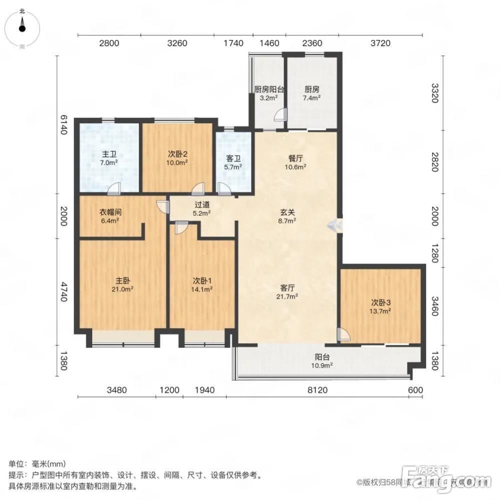 户型齐全,主打南北通透,全明格局,客厅朝南,主卧带卫,带衣帽间,明厨明卫,干湿分离四居