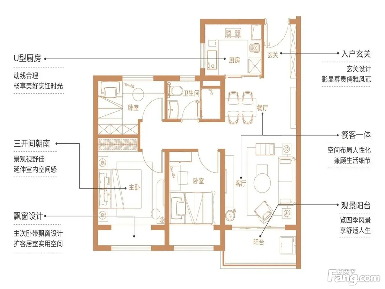 户型齐全,主打南北通透,户型方正,动静分离,客厅朝南,卧室朝南三居