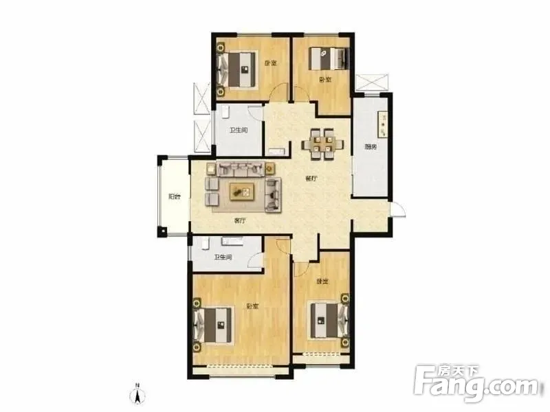 户型齐全,主打南北通透,主卧朝南,主卧带卫三居
