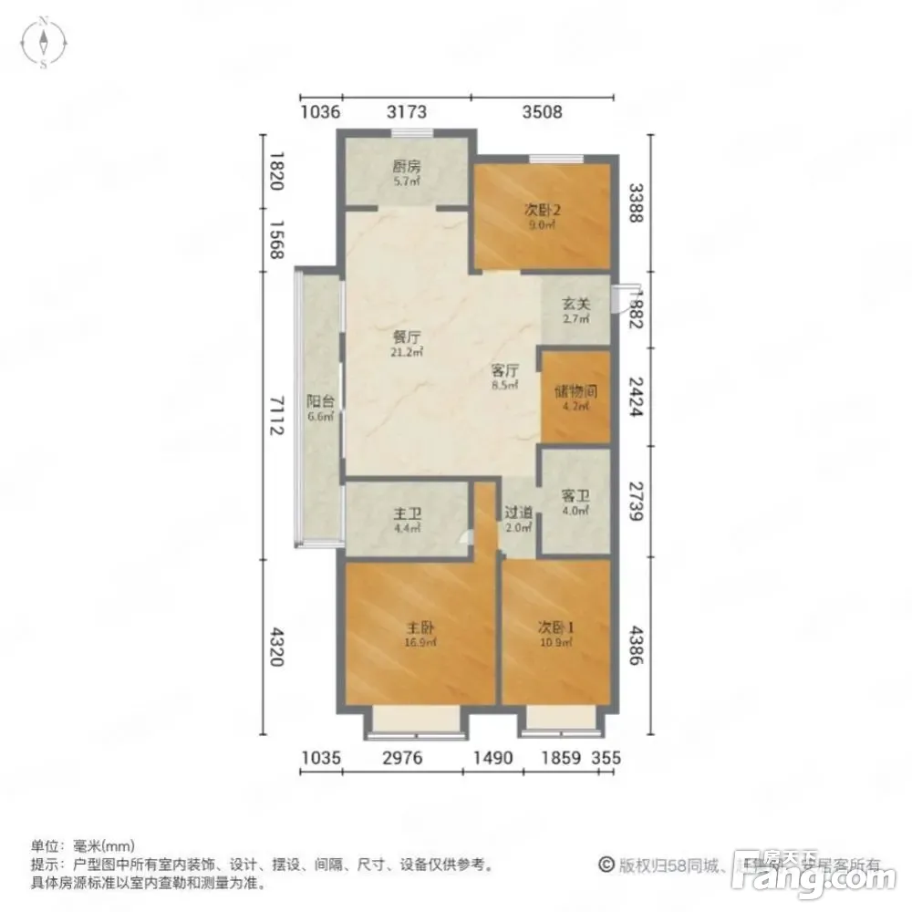 户型齐全,主打南北通透,全明格局三居