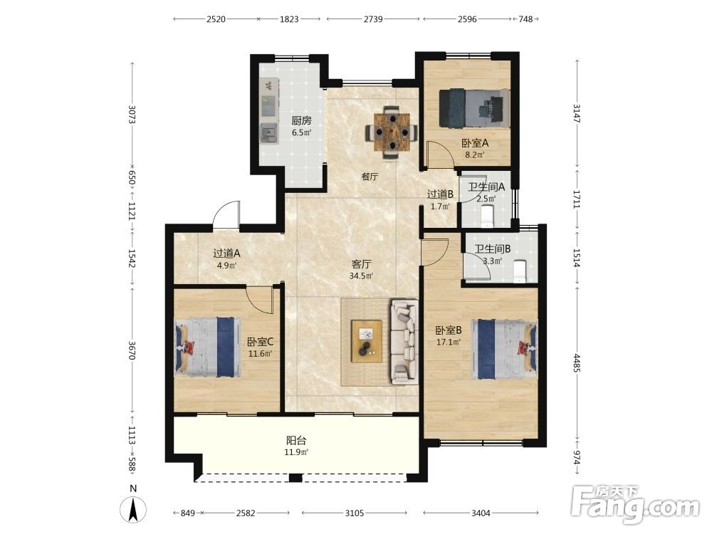 3室2厅1卫