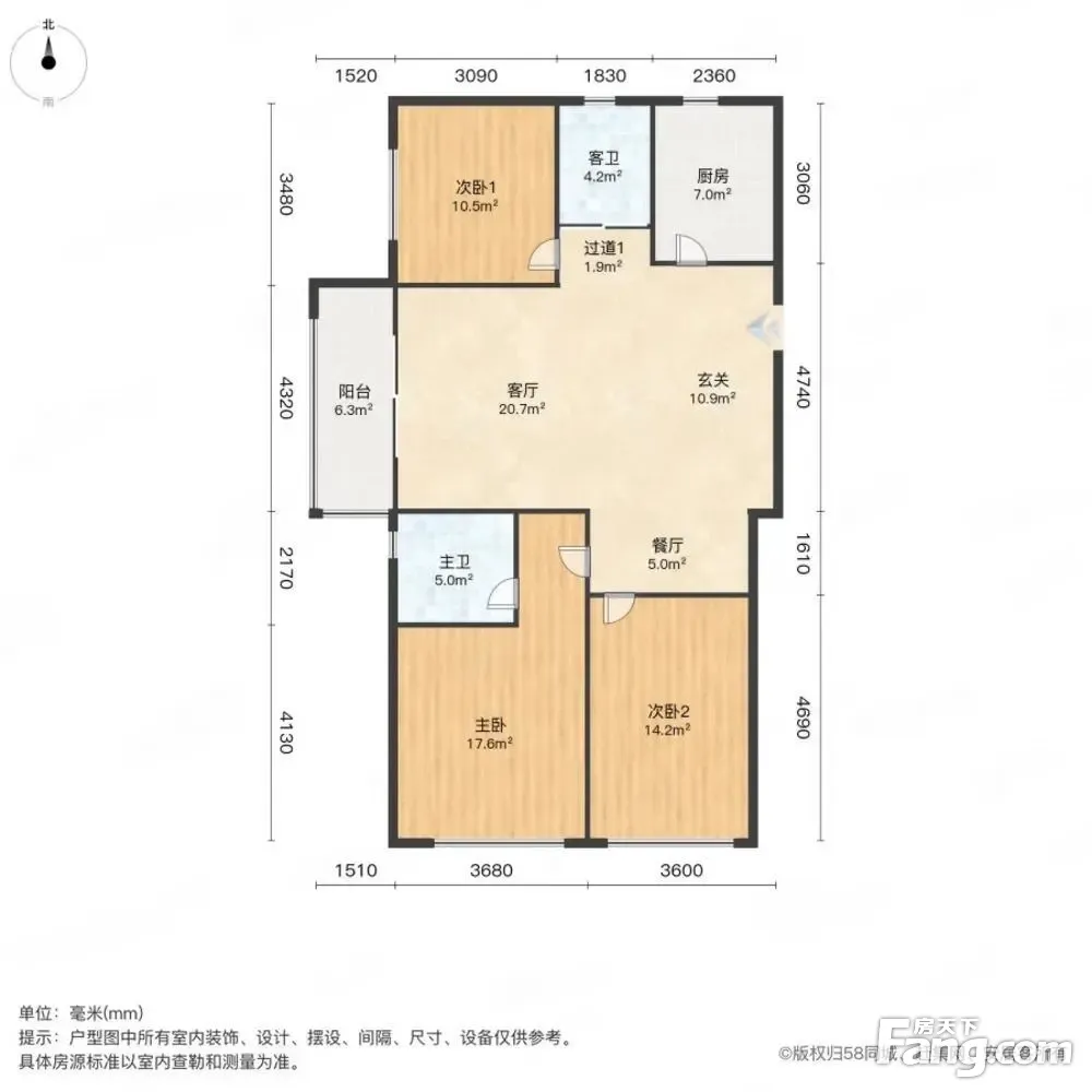 户型齐全,主打南北通透,全明格局三居