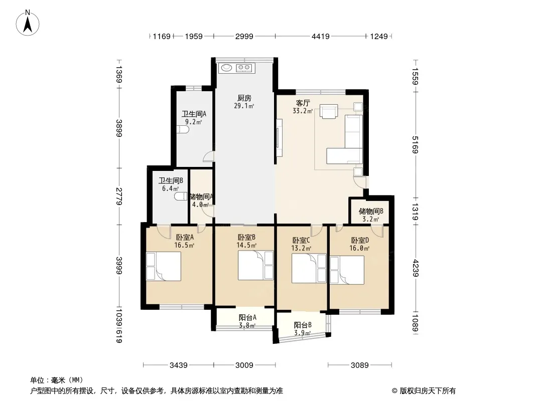 户型齐全,主打明卫,明厨四居