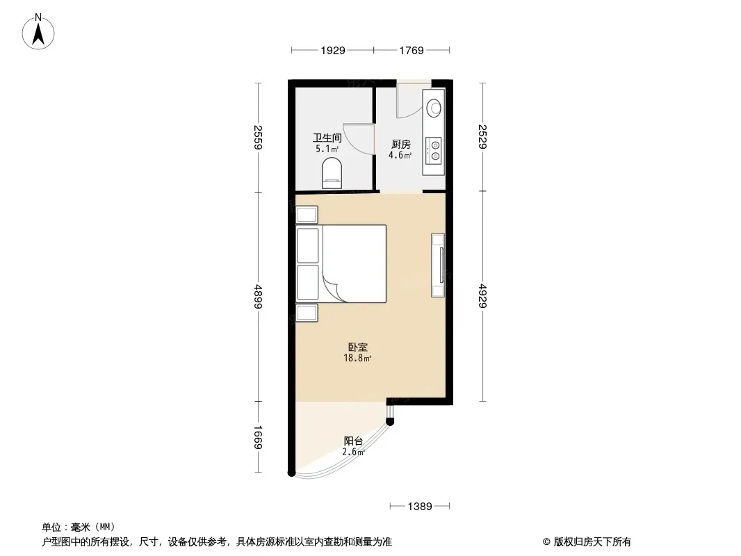 户型齐全,主打明厨,主卧朝南一居