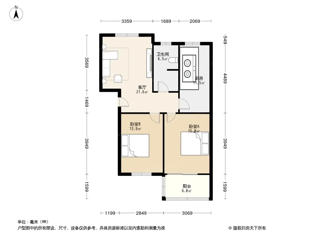 户型齐全,主打明厨,明卫,客厅朝南二居