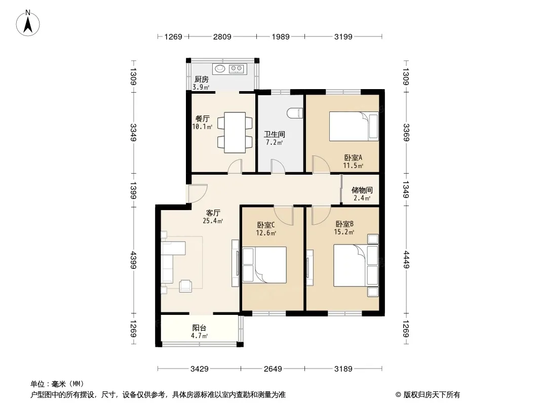 户型齐全,主打户型方正,明厨,明卫,主卧朝南三居