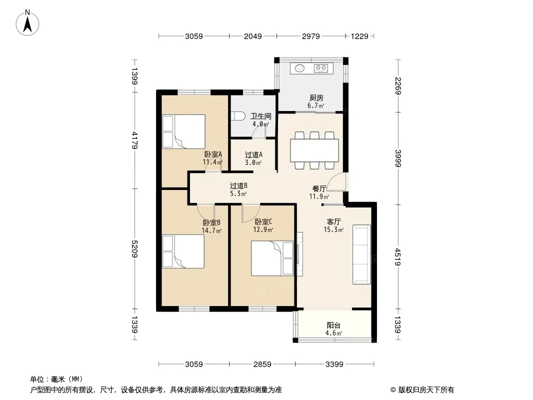 户型齐全,主打户型方正,明厨,明卫,主卧朝南三居