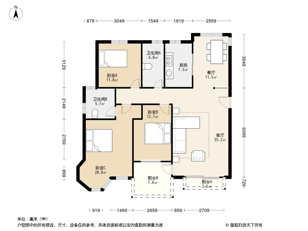 户型齐全,主打明厨,明卫,主卧朝南,独立衣帽间三居