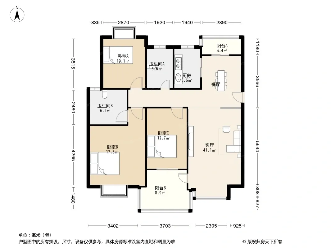 户型齐全,主打明厨,明卫,主卧朝南,独立衣帽间三居